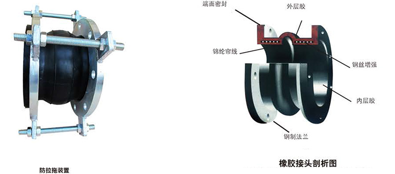 The Limit Flexible Rubber Joint product is composed of inner rubber layer, nylon cord fabric, rubber sphere compounded by outer rubber layer and loose metal flange.