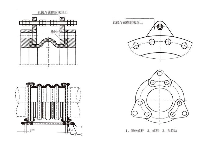 The Limit Flexible Rubber Joint product is composed of inner rubber layer, nylon cord fabric, rubber sphere compounded by outer rubber layer and loose metal flange. It has the characteristics of high pressure resistance, good elasticity, large displacement, shock absorption and noise reduction, flexible installation, etc. It can be widely used in water supply and drainage, circulating water, HVAC, papermaking, petrochemical, ships, compressors, pumps, fans and other pipelines system.