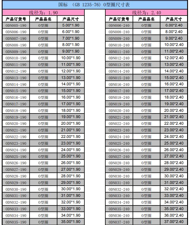 2、标準:大(dà)部分國家(jiā)對0型密封圈都制(zhì)定系列産品标準,其中美國标準(AS 568)、 日本标準(JIS B2401)、國際标準(IS0 3601/1)較為(wèi)通(tōng)用。